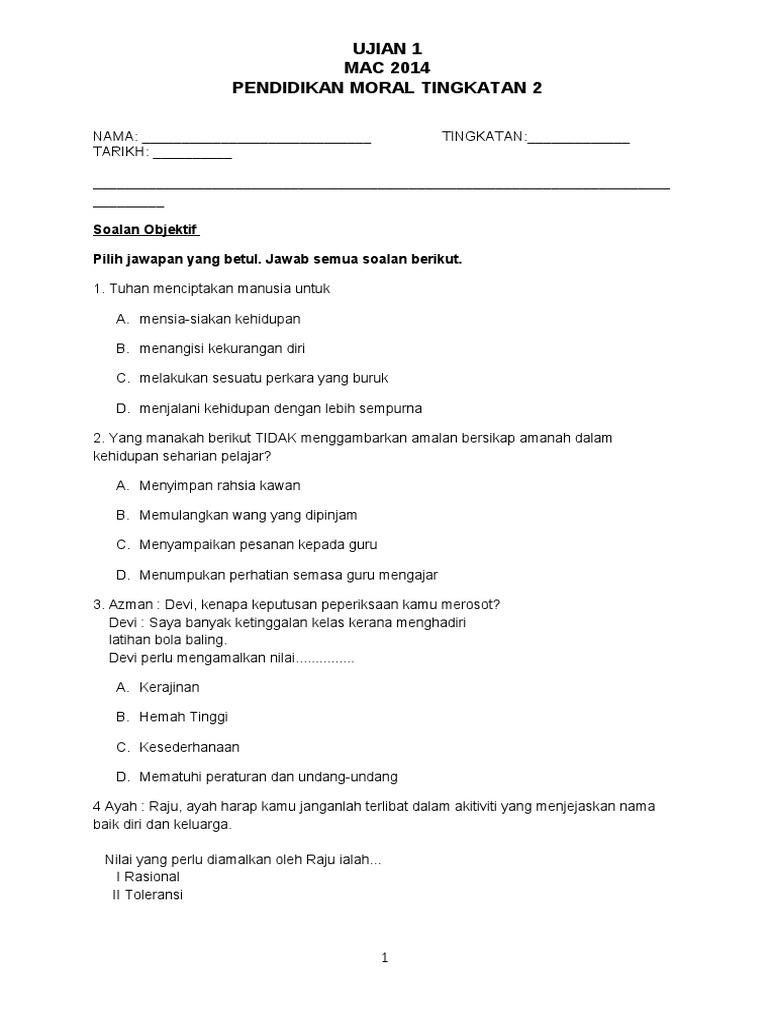 Ujian Moral Tingkatan 2 Awal Pdf